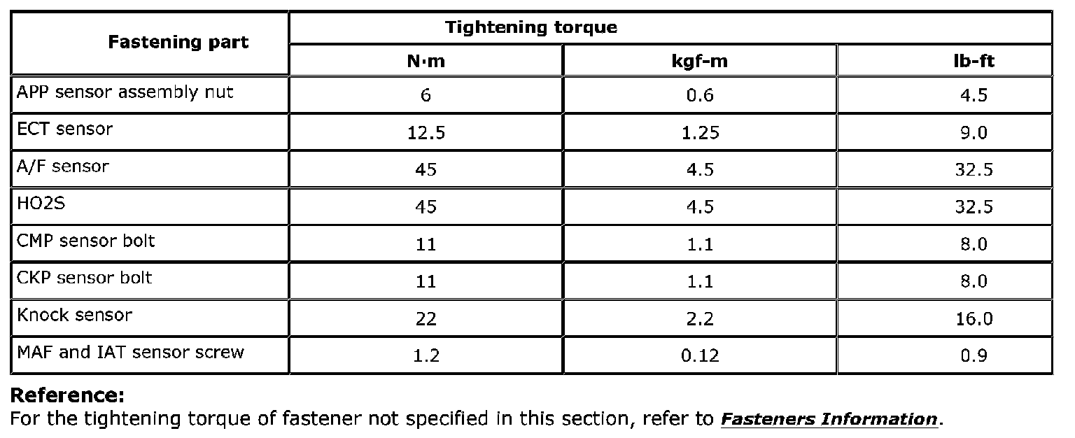 Tightening Torque Specifications: