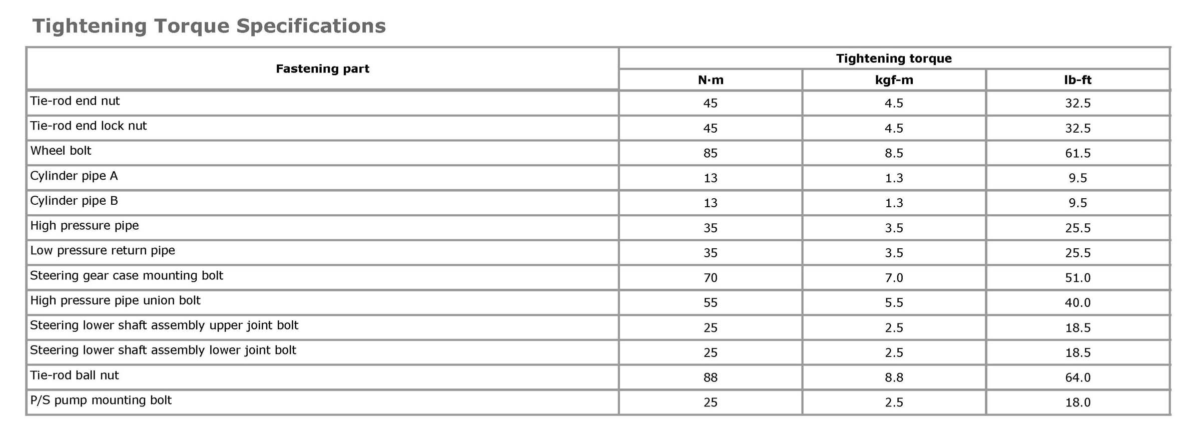 Tightening Torque SpecificationsNOTE: The specified tightening torque is also described in the following.