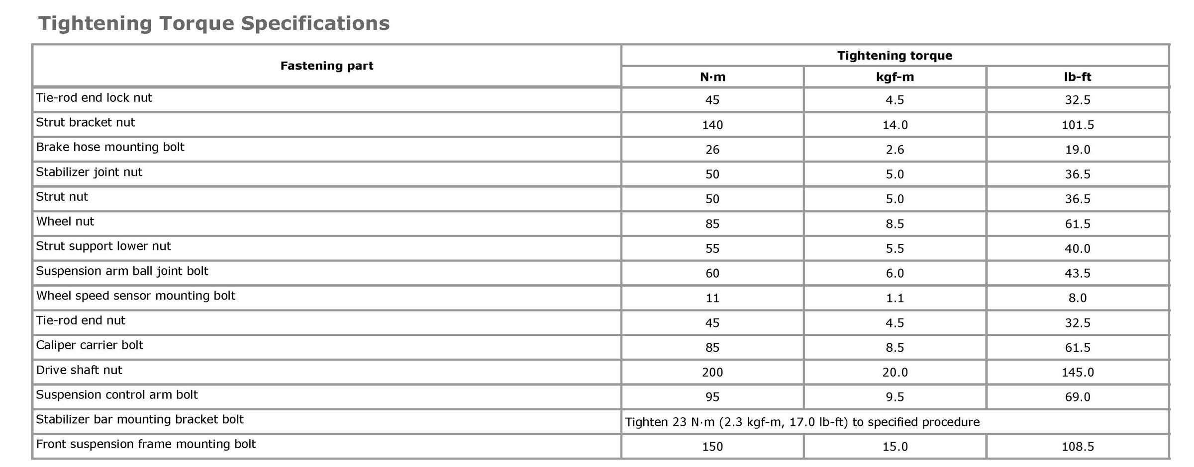 Tightening Torque SpecificationsNOTE: The specified tightening torque is also described in the following.