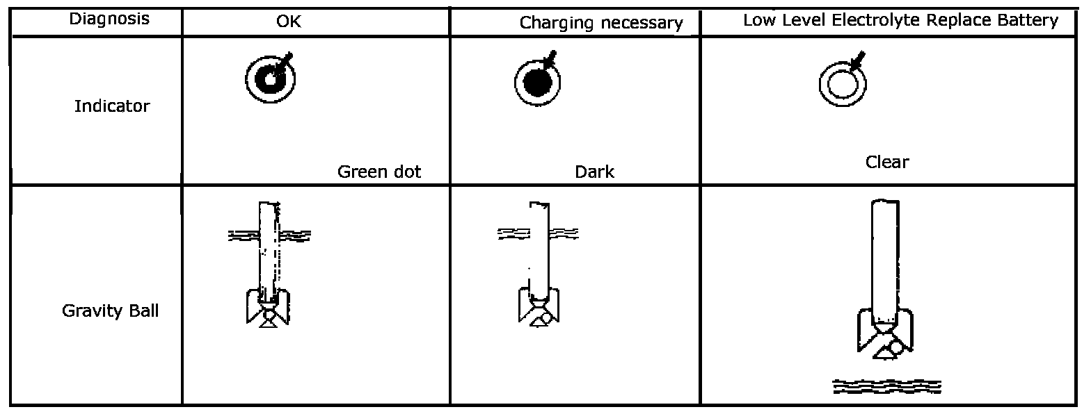 This means that fluid level is below the bottom of hydrometer. Its possible cause is excessive or prolonged charging, a broken case, excessive tipping or normal battery deterioration.