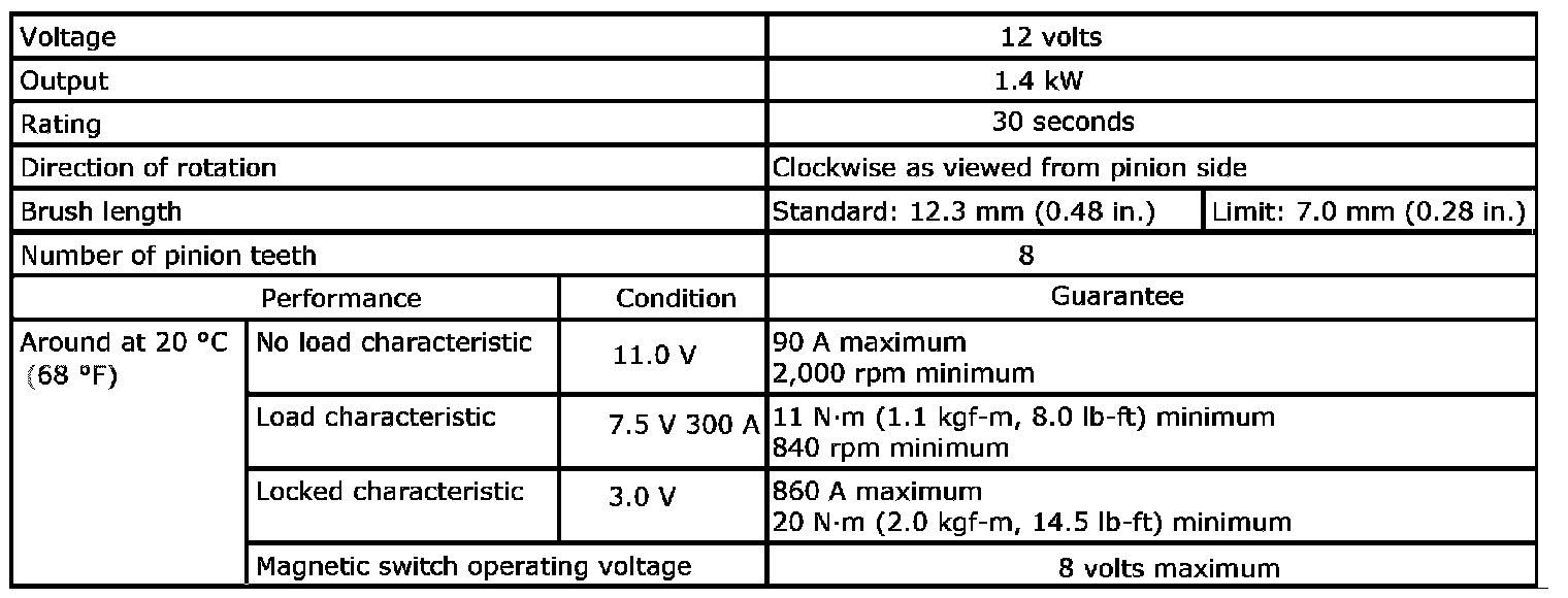 Cranking System Specifications: