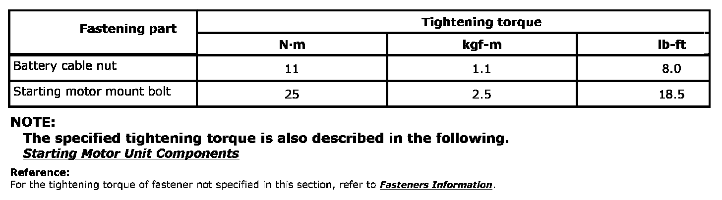 Tightening Torque Specifications: