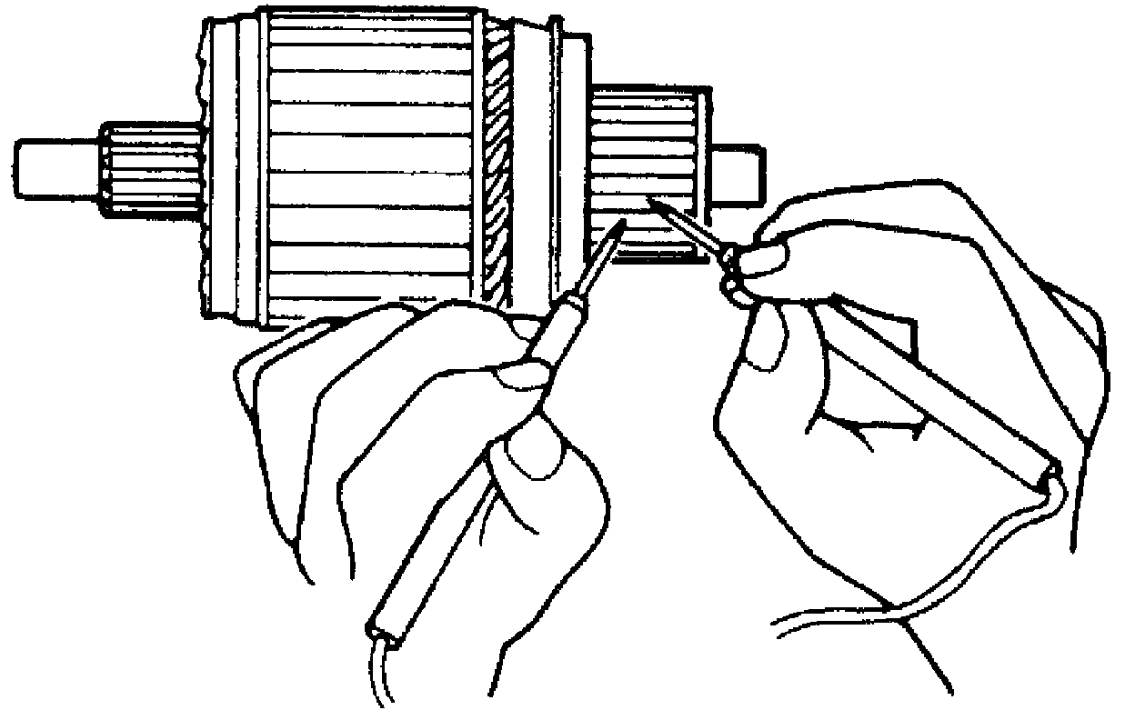 ^ Check the commutator and armature core. If there is continuity, the armature is grounded and must be replaced.