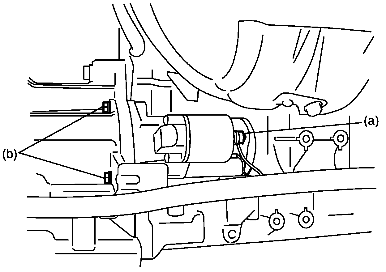Starting motor mount bolt b: 25 Nm (2.5 kg.m, 18.5 ft. lbs.)