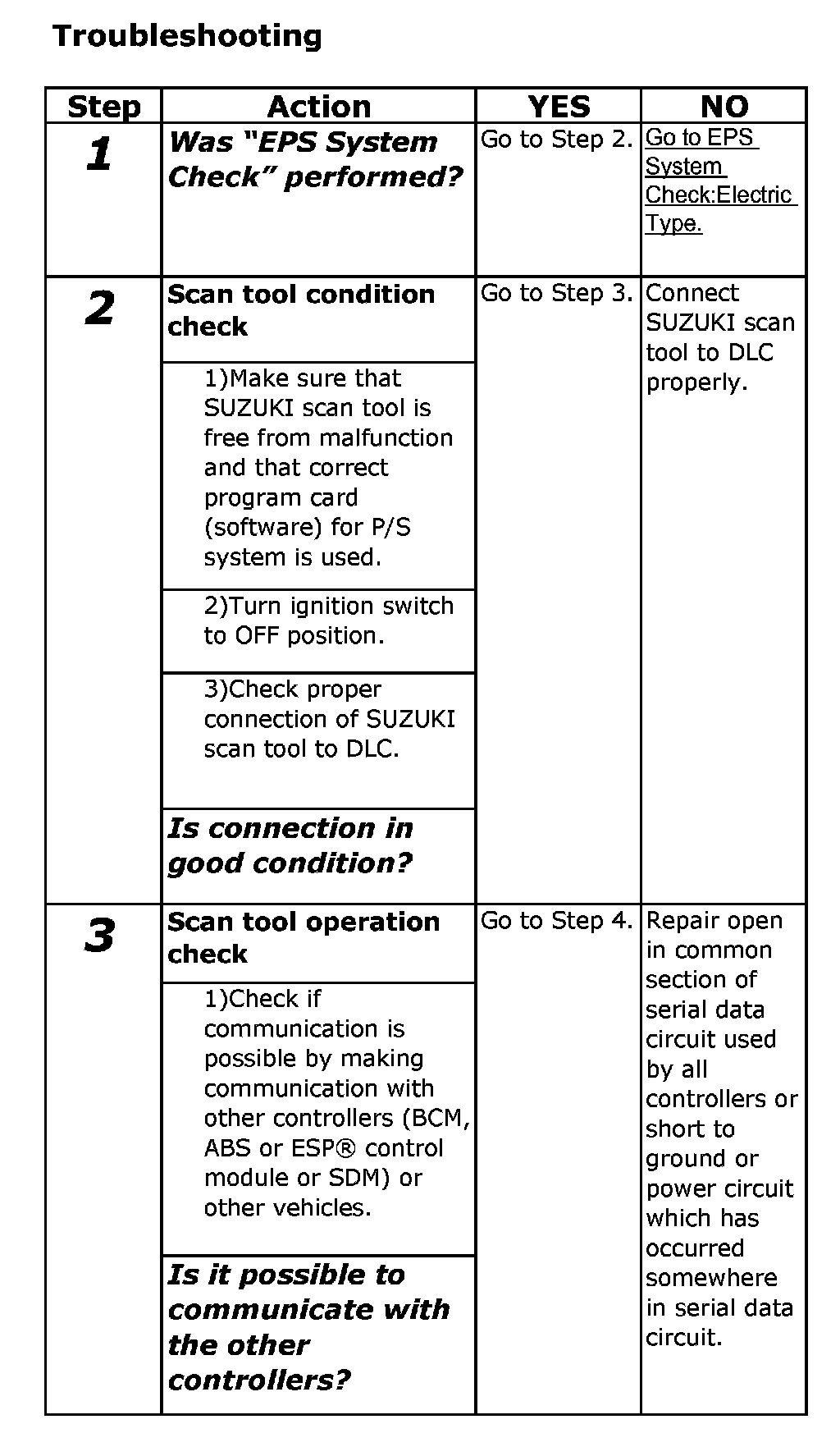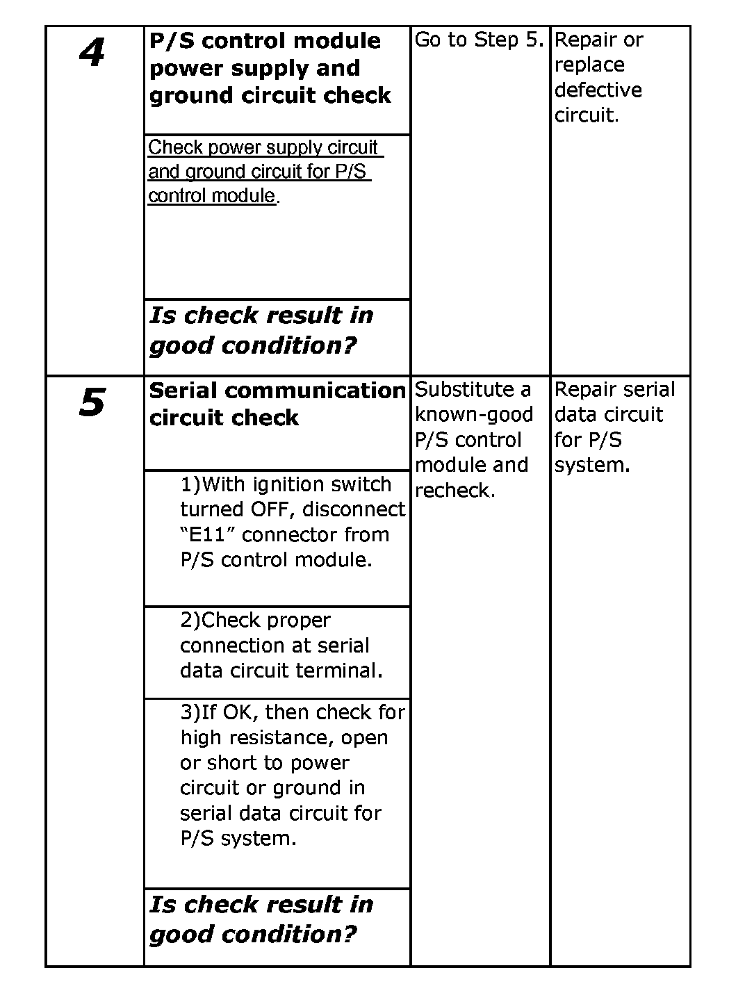Serial Data Link Circuit Check (No communication to P/S Control Module)