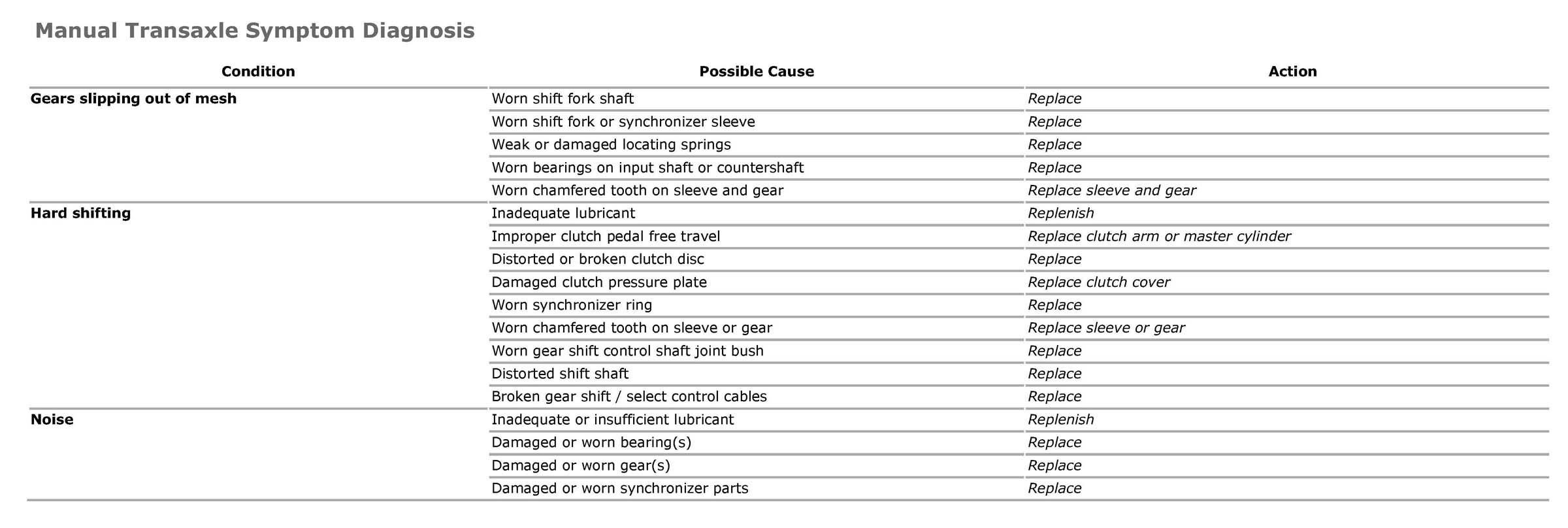 Manual Transaxle Symptom Diagnosis