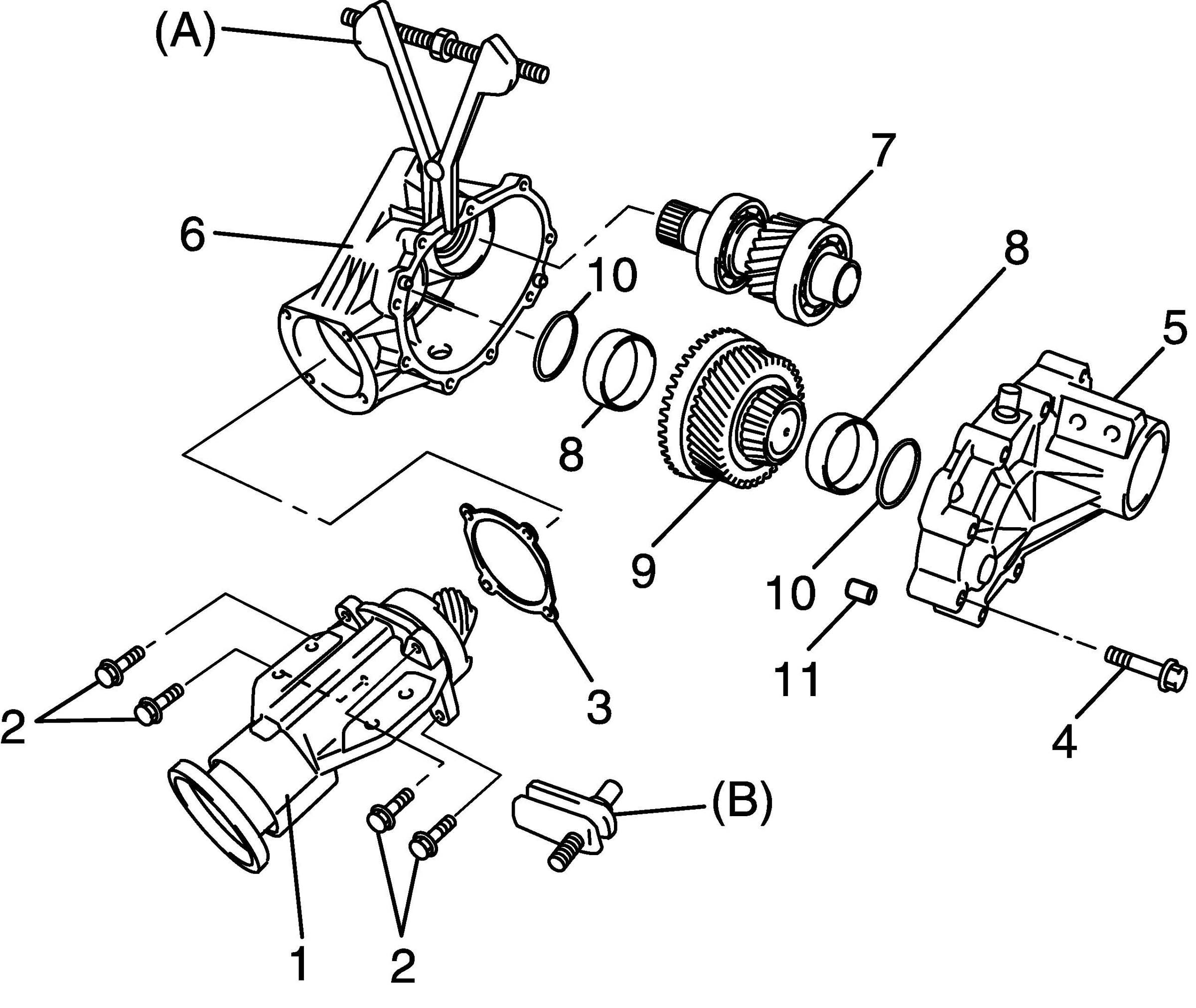 NOTE: It is possible to disassemble transfer assembly without removing intermediate shaft with Step 1) to 4) performed if not necessary.