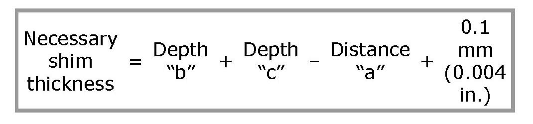 Necessary shim thickness = 85.8 mm (3.378 in.) + 26.55 mm (1.045 in.) - 110.75 mm (4.360 in.) + 0.1 mm (0.004 in.) = 1.7 mm (0.067 in.)