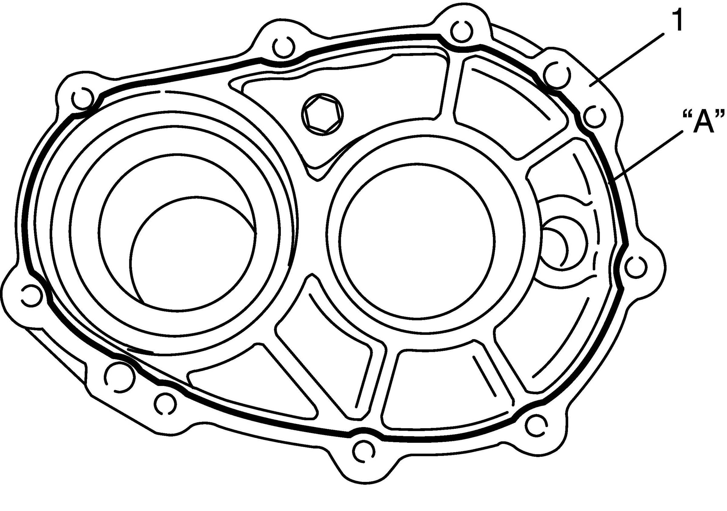 2. Clean mating surface of right and left cases, and apply sealant to right case (1) as shown in figure by such amount that its section is 1.2 mm (0.047 in.) in diameter.