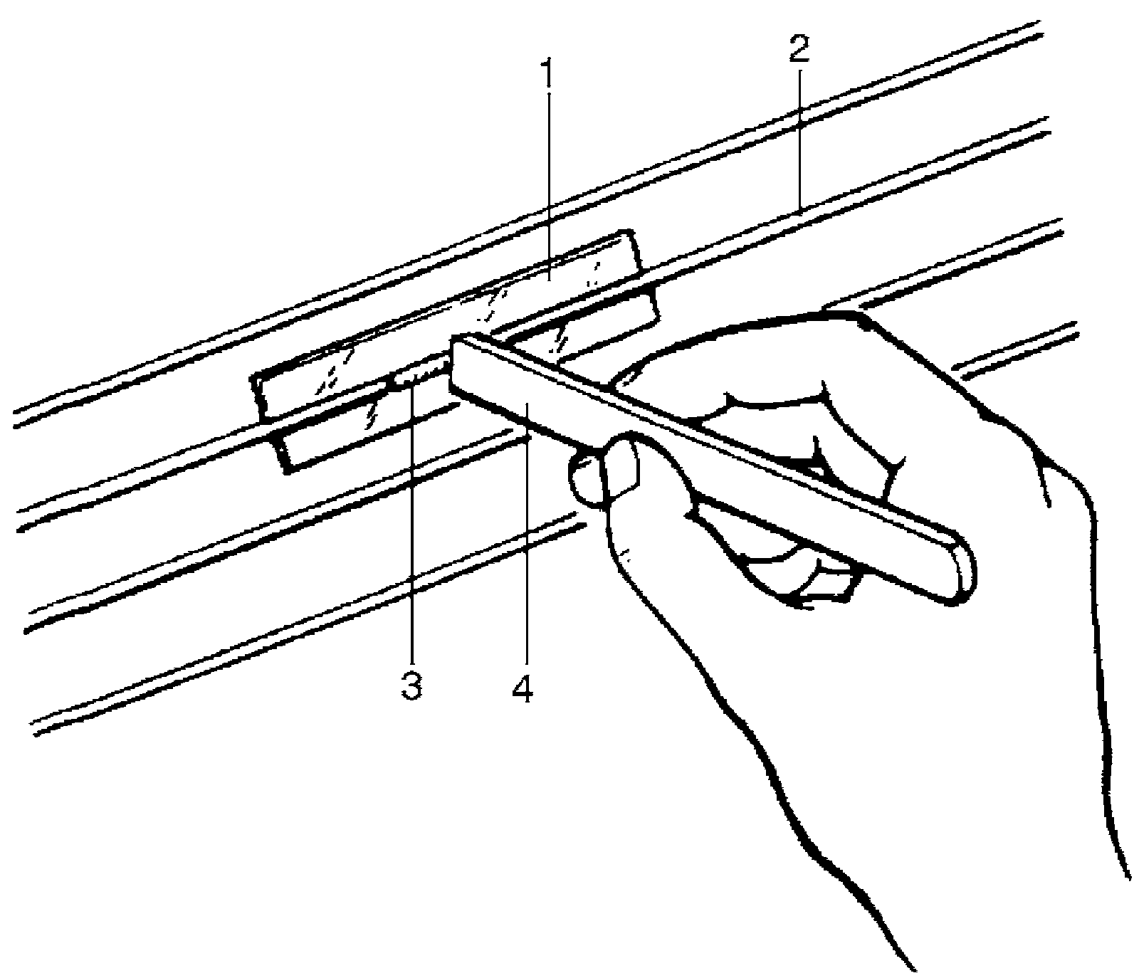 3. Apply commercially-available repair agent (3) with a fine-tip brush (4).
