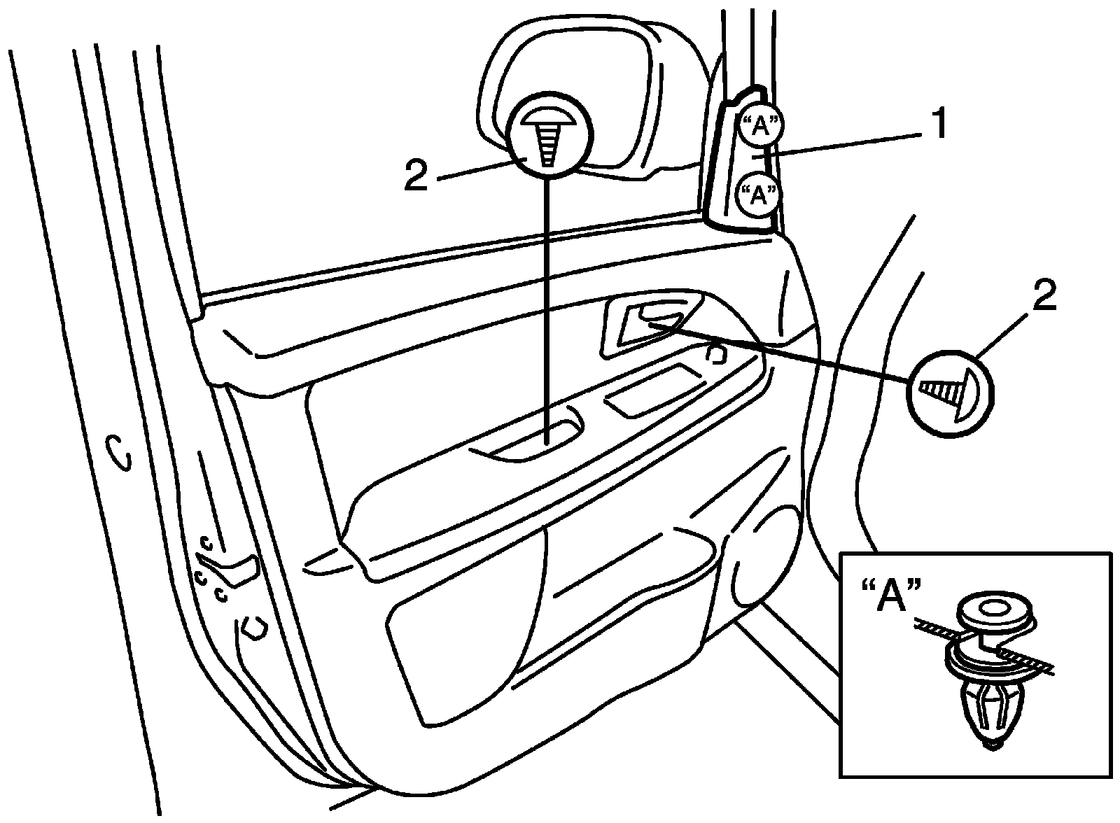 2. Remove door trim mounting screws (2).