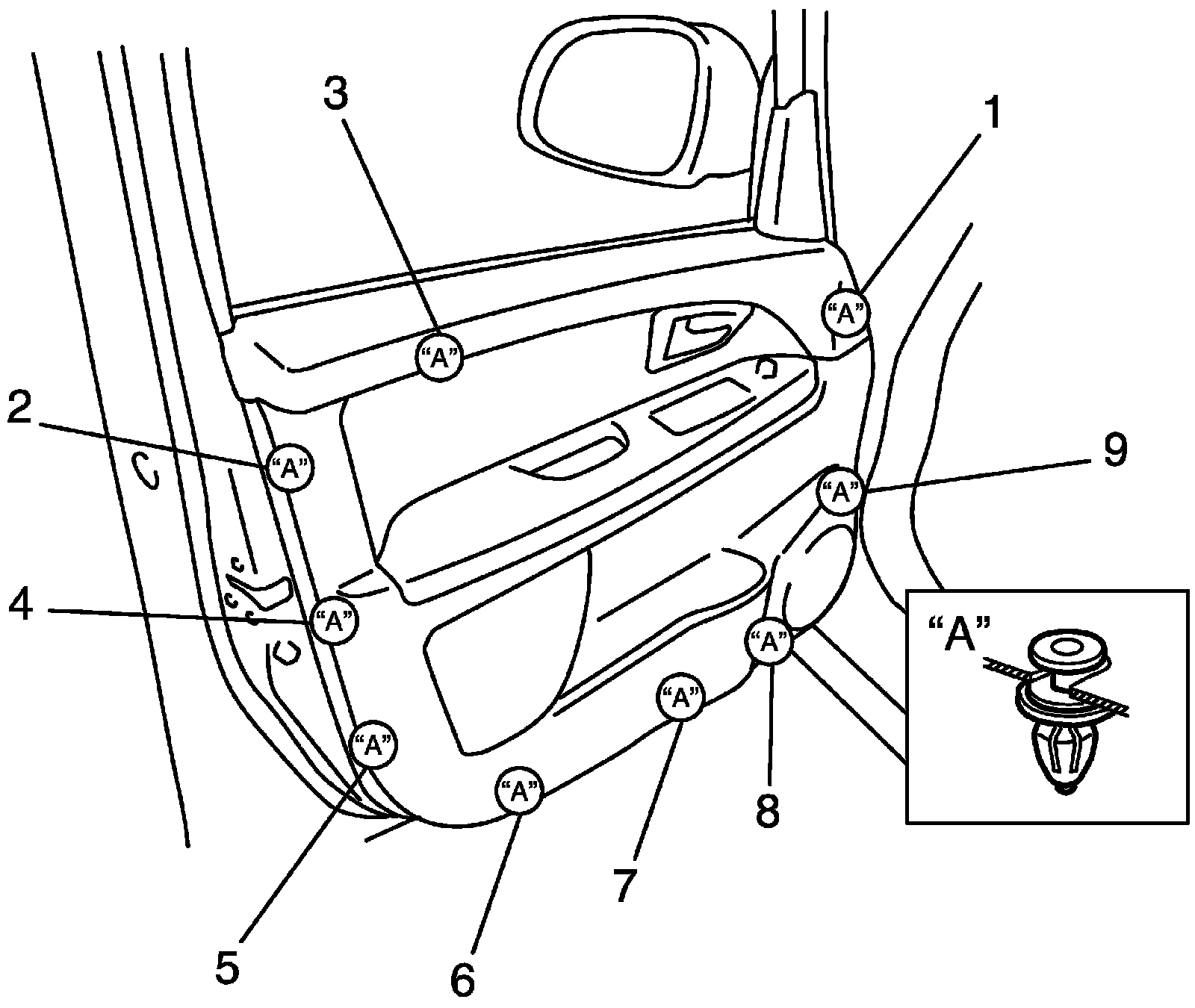 5. Remove door trim bracket (1).