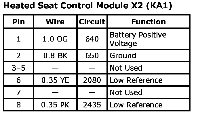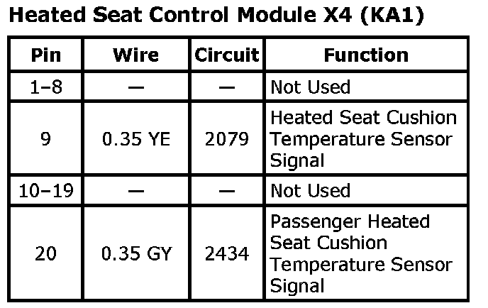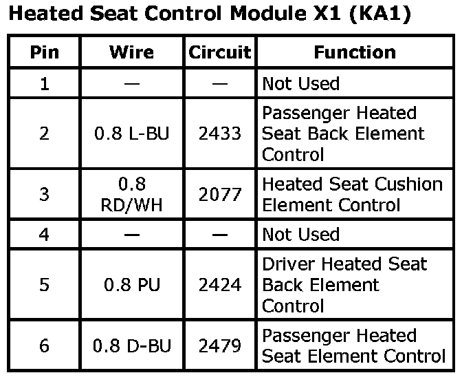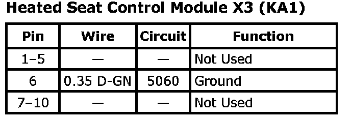 Heated Seat Control Module X1 (KA1)Heated Seat Control Module X1 (KA1):