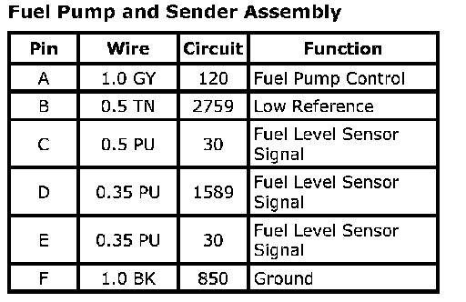 Fuel Pump and Sender AssemblyConnector Part Information
