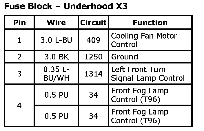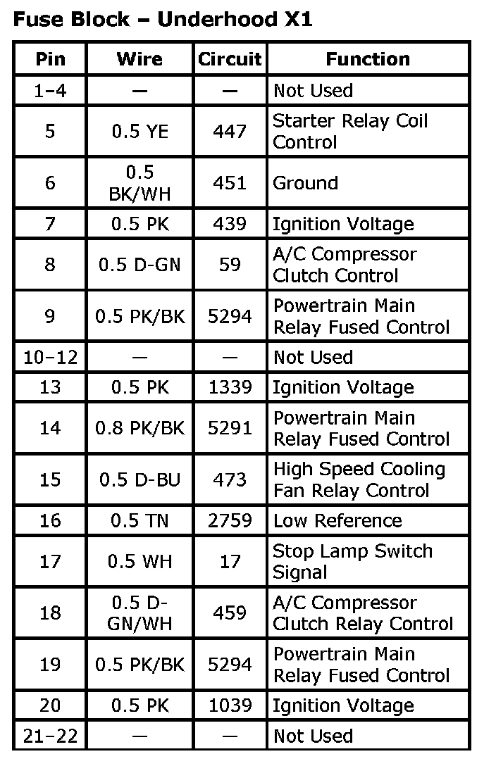 Fuse Block - Underhood X1 (Part 1):