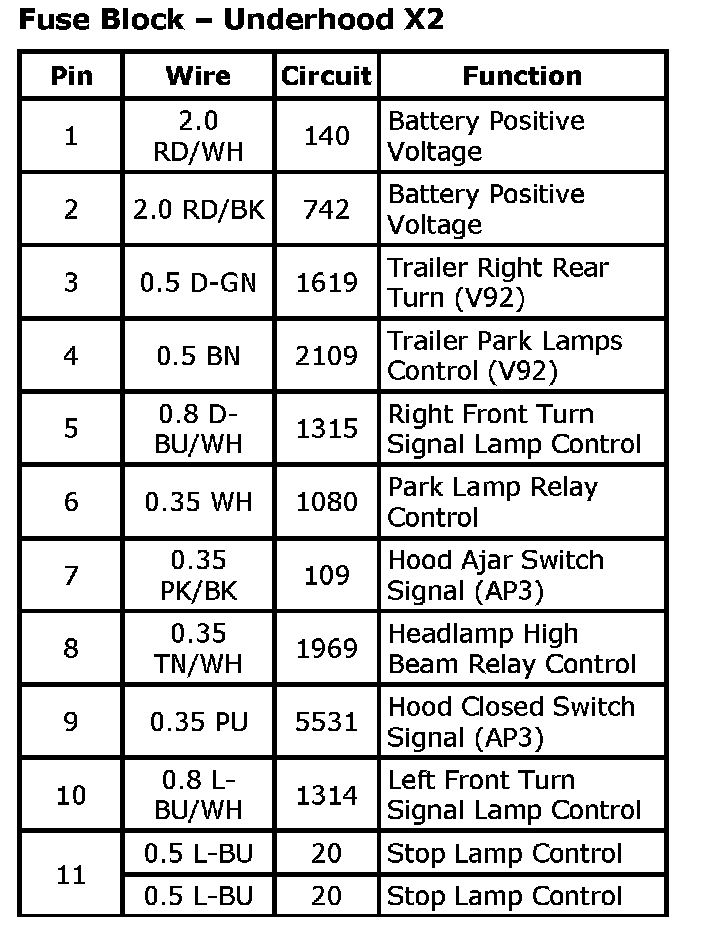Fuse Block - Underhood X1 (Part 2):