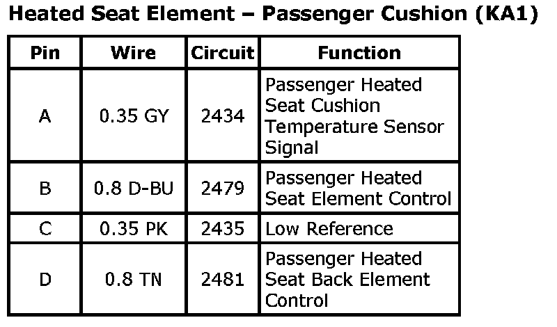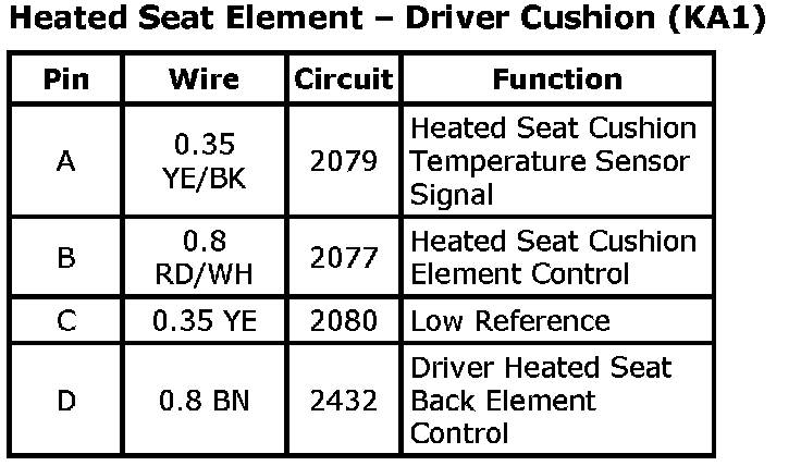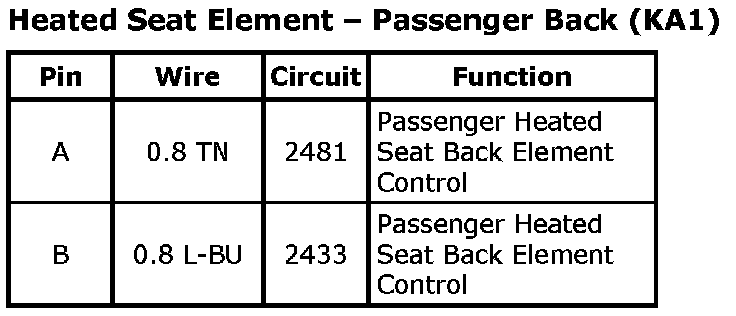 Heated Seat Element - Driver Back (KA1)Heated Seat Element - Driver Back (KA1):