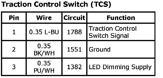 Traction Control Switch (TCS)Traction Control Switch (TCS):