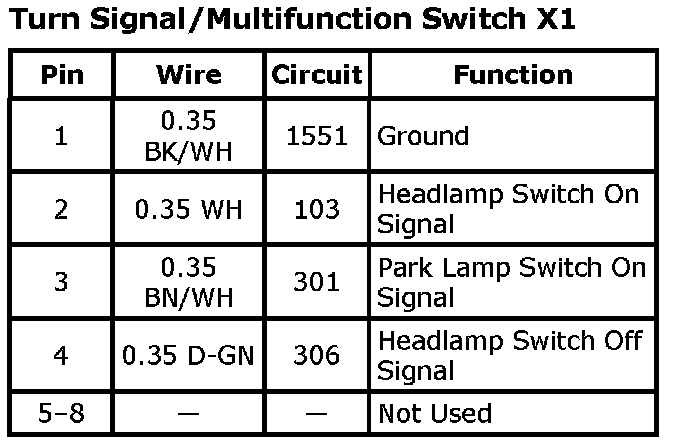 Turn Signal/Multifunction Switch X1Turn Signal/Multifunction Switch X1: