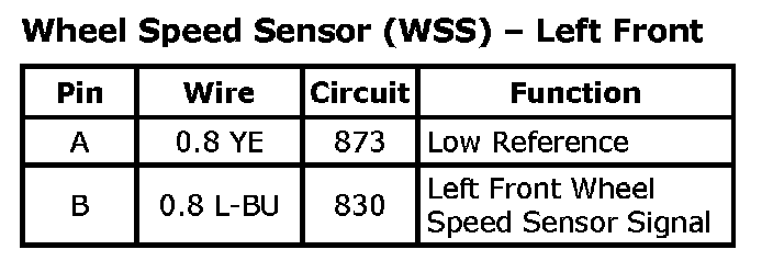 Wheel Speed Sensor (WSS) - Left FrontWheel Speed Sensor (WSS) - Left Front: