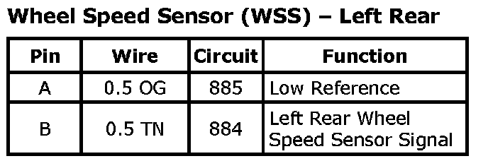 Wheel Speed Sensor (WSS) - Left Rear:
