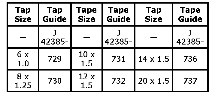 If the threaded hole being repaired has a base surface perpendicular to the hole centerline, tapping guides are available to aid in tapping the hole.