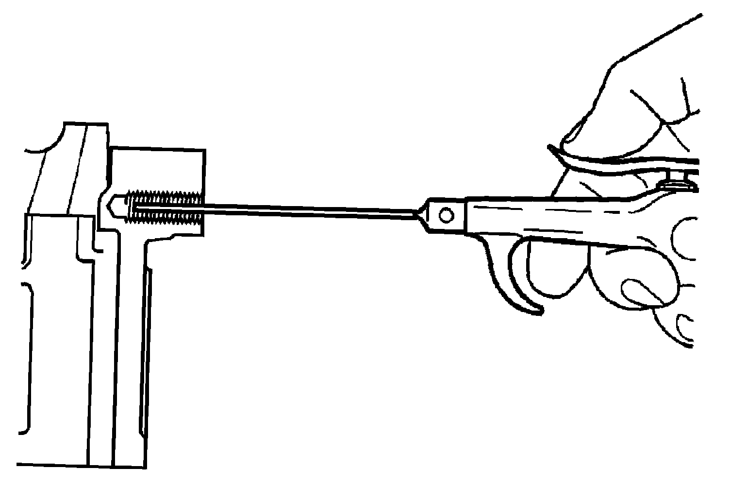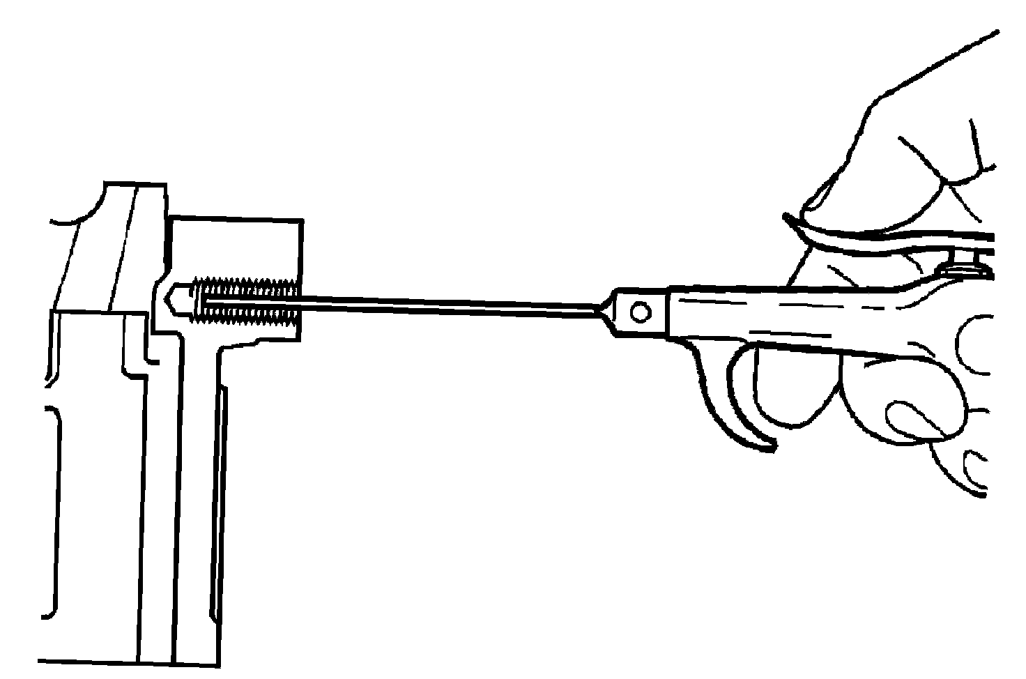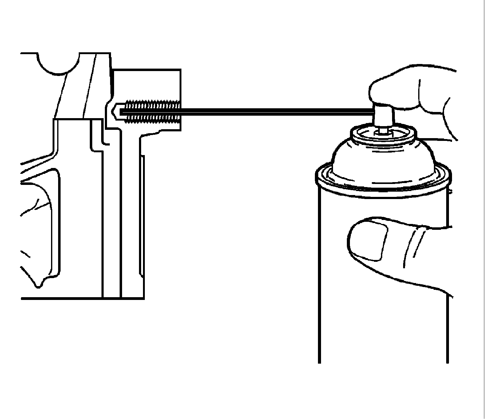 7. Spray cleaner GM P/N 12346139, GM P/N 12377981 (Canadian P/N 10953463) or equivalent into the tapped hole.