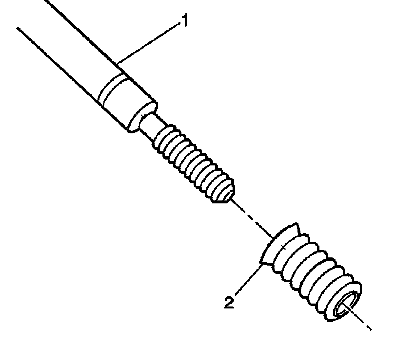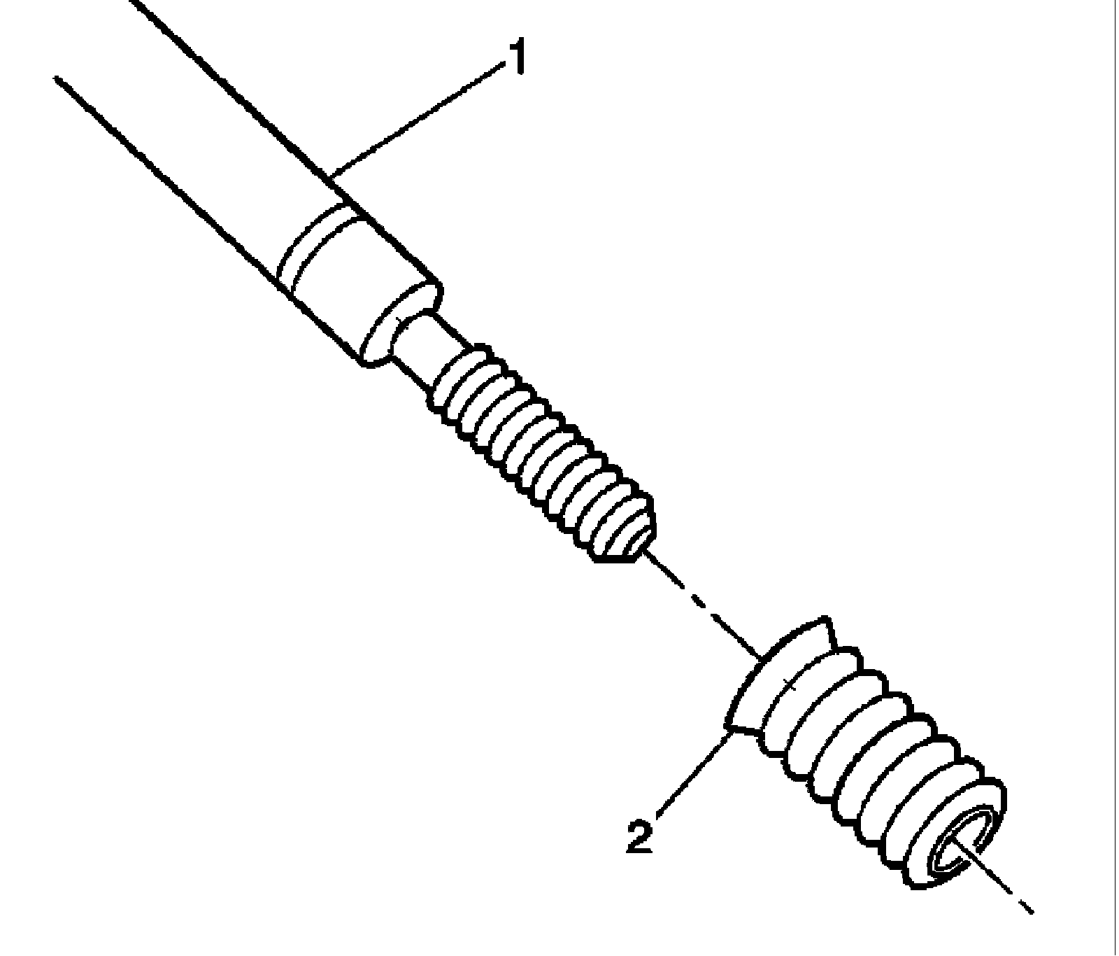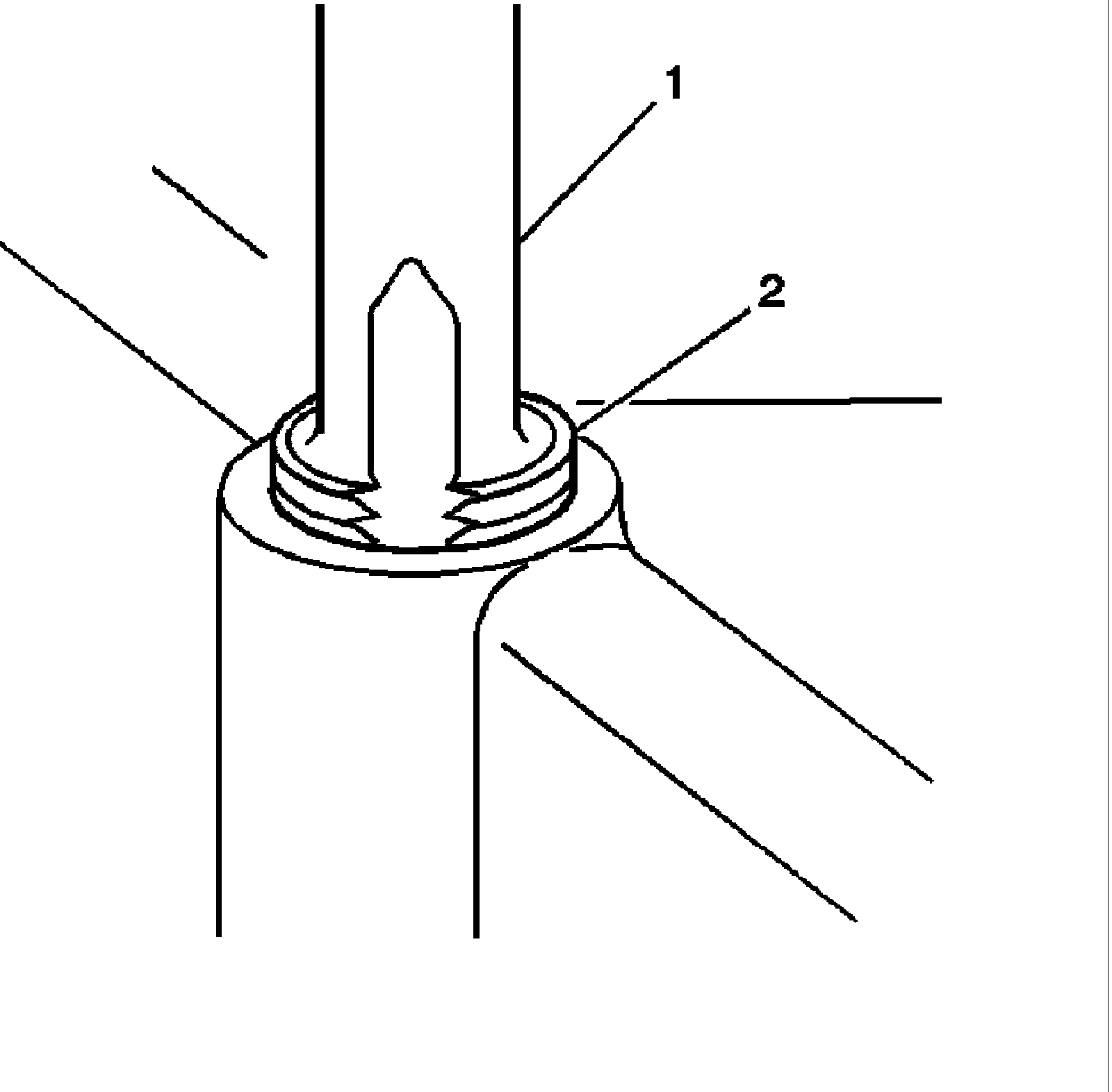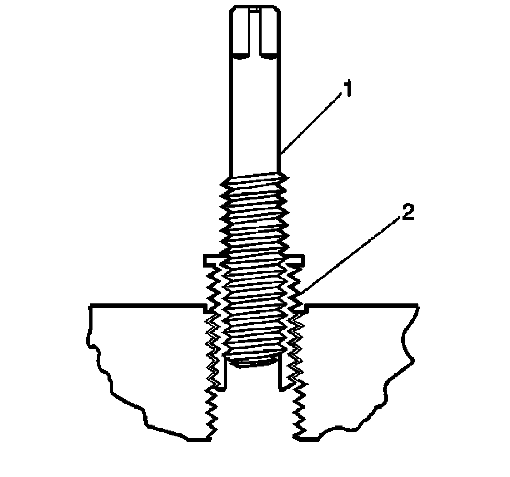 10. Apply threadlock sealant GM P/N 12345493, (Canadian P/N 10953488), J 42385-109, LOCTITE 277(R) or equivalent (1) to the insert OD threads (2).