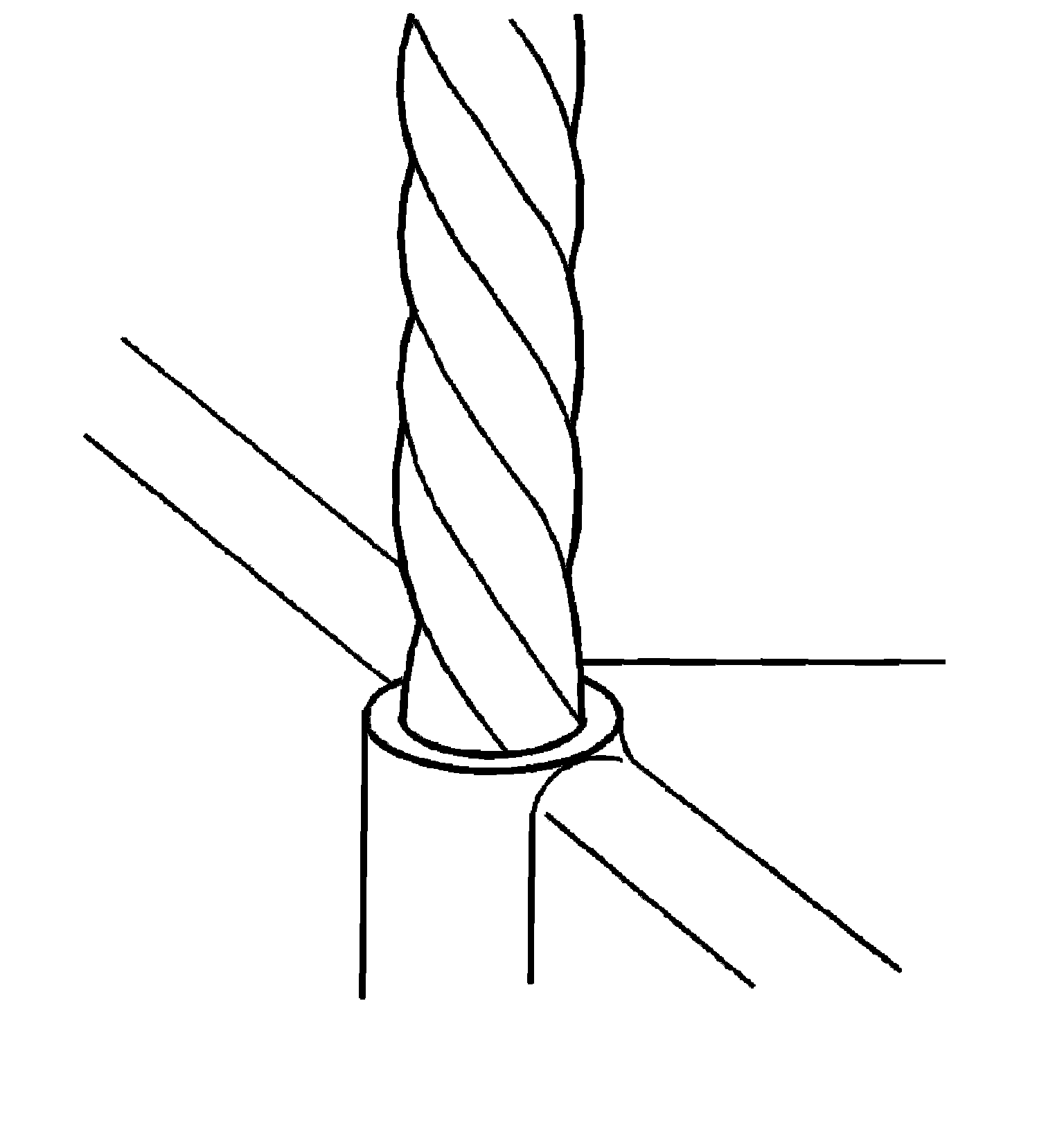 ^ During the drilling process, it is necessary to repeatedly remove the drill and clean chips from the hole and the flutes of the drill.