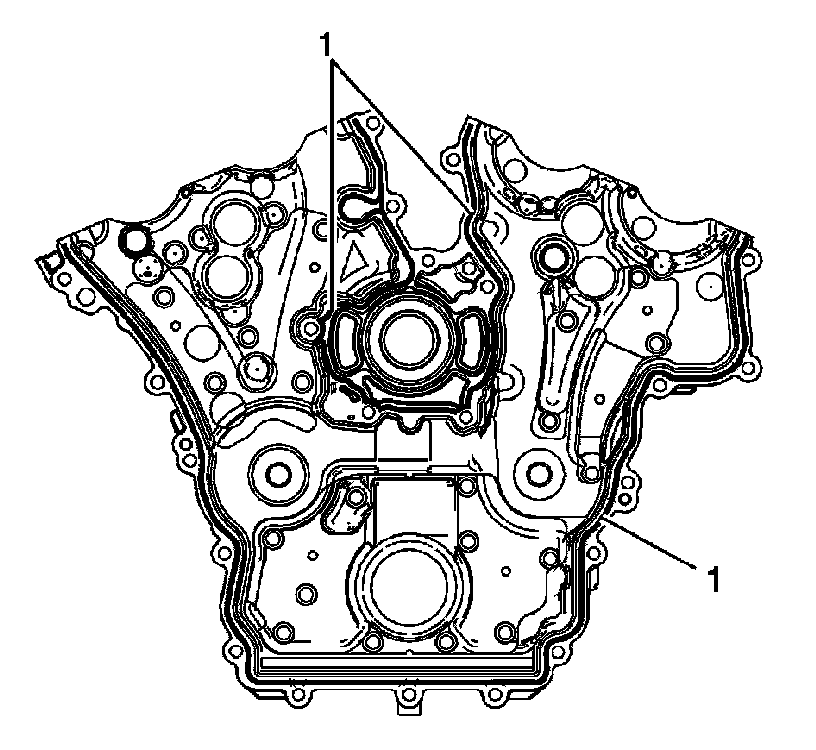 1. Remove any RTV sealant (1) from the engine front cover using J 28410.