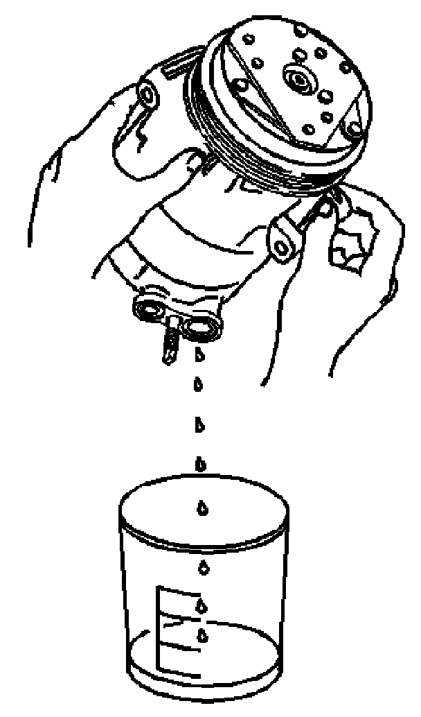 1. Drain the oil from both the suction and discharge ports of the removed compressor into a clean, graduated container.