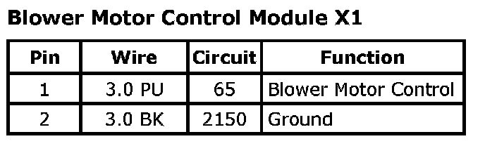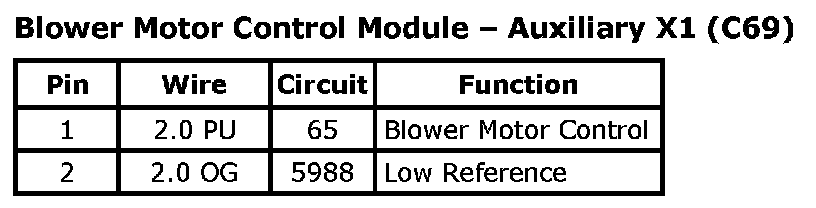 Blower Motor Control Module - Auxiliary X1 (C69):