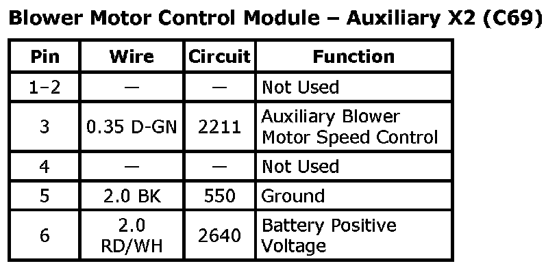 Blower Motor Control Module - Auxiliary X2 (C69):