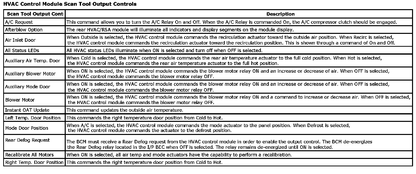 HVAC Control Module Scan Tool Output Controls: