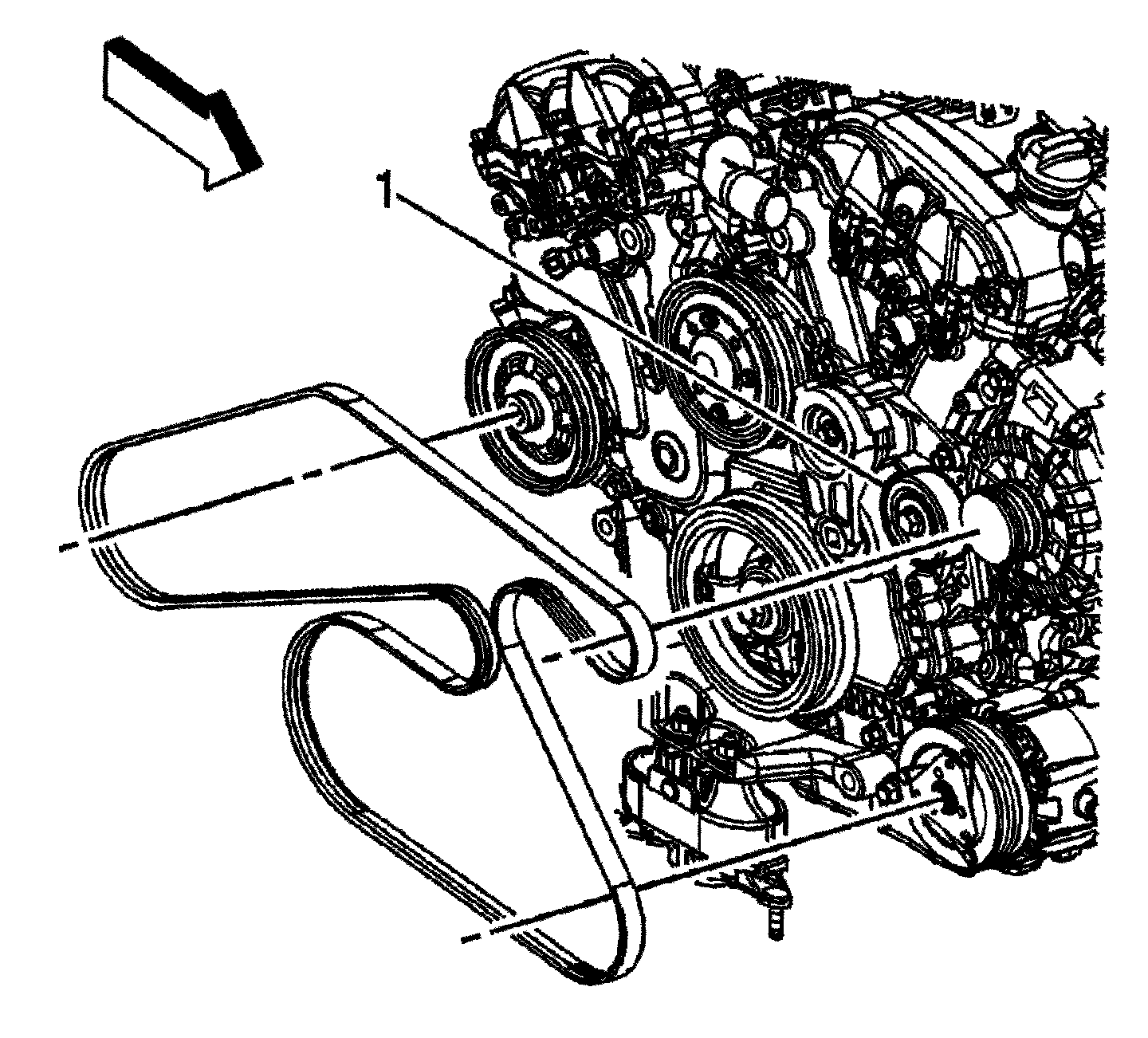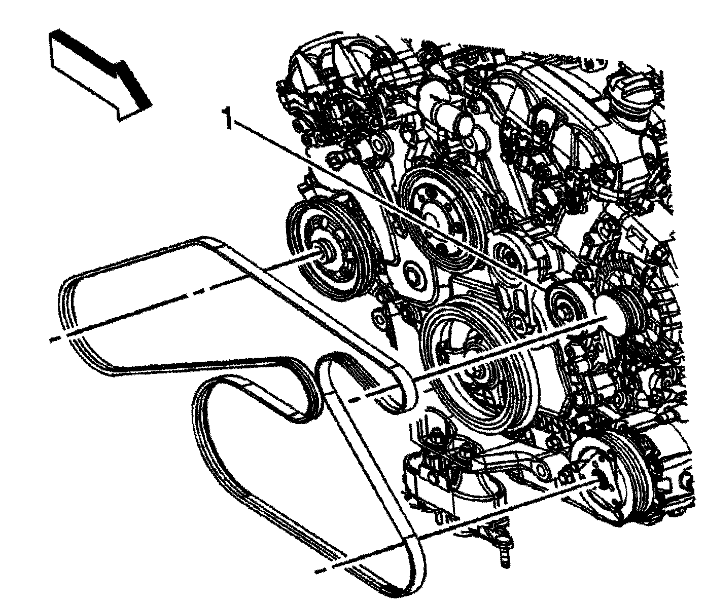 3. Install the drive belt to the idler pulley (1).