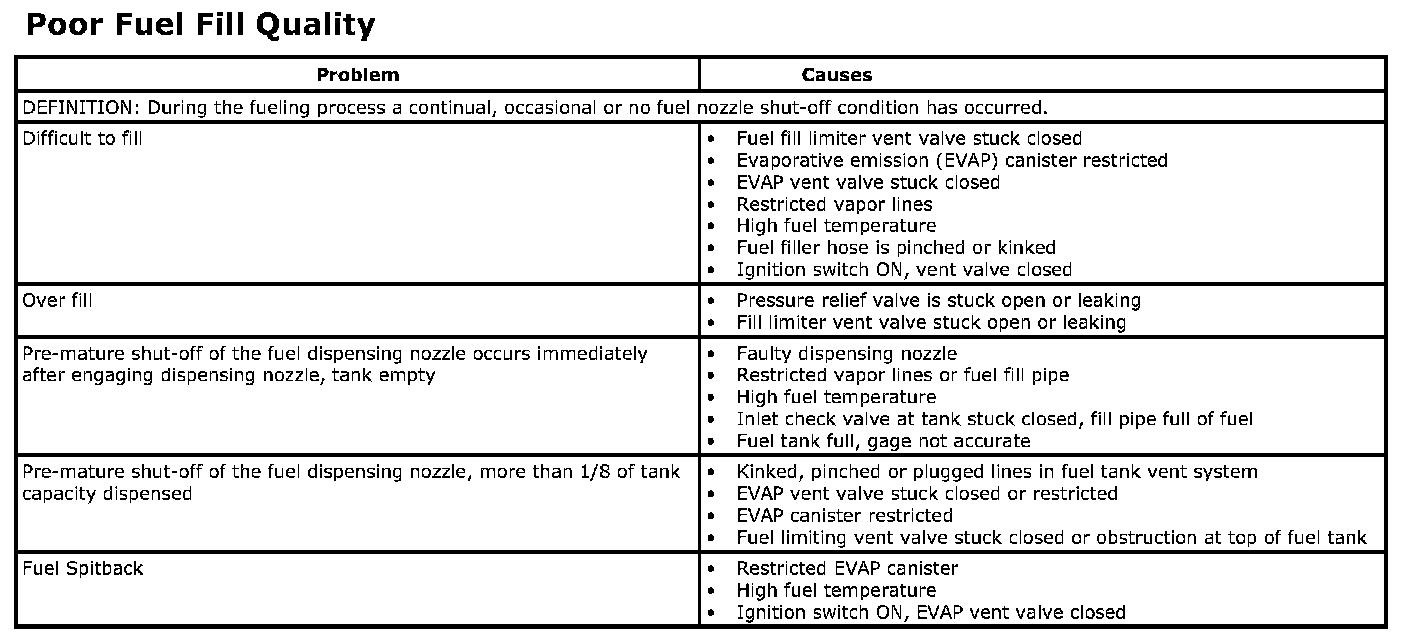 Poor Fuel Fill Quality