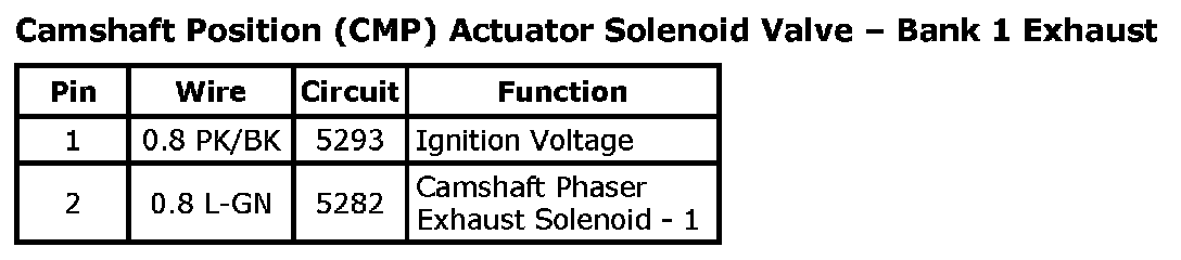 Camshaft Position (CMP) Actuator Solenoid - Bank 1 ExhaustCamshaft Position (CMP) Actuator Solenoid Valve - Bank 1 Exhaust: