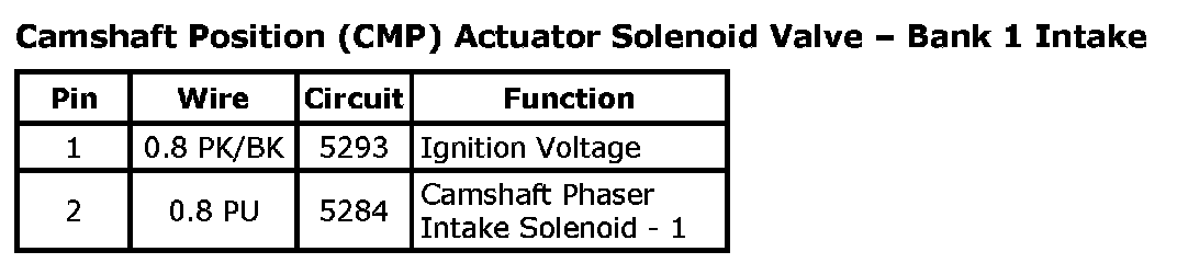 Camshaft Position (CMP) Actuator Solenoid Valve - Bank 1 Intake: