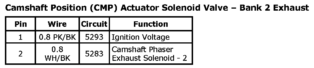 Camshaft Position (CMP) Actuator Solenoid - Bank 2 Exhaust