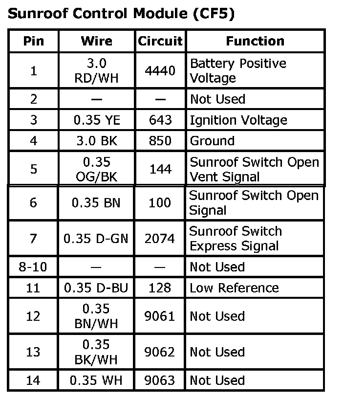 Sunroof / Moonroof Module: Diagrams