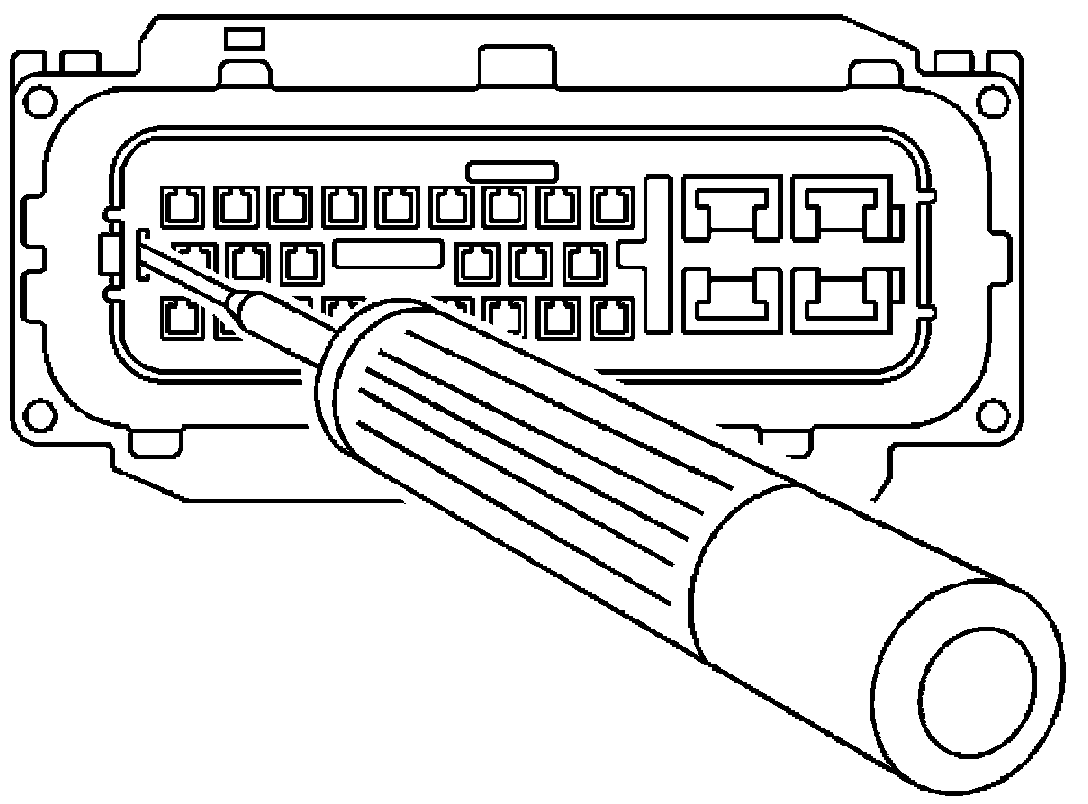 8. The illustration shows a cutaway view of the connector to aid the technician in releasing the terminal retainer.