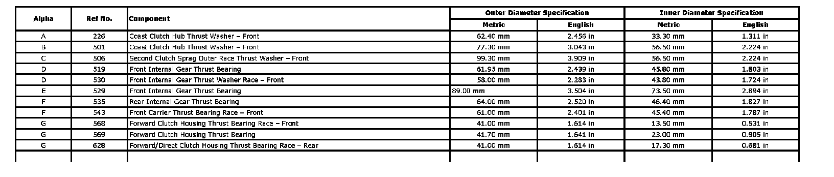 Race and Bearing Specifications: