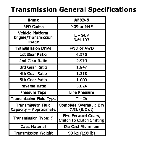 Transmission General Specifications: