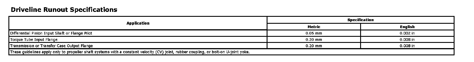 Driveline Runout Specifications: