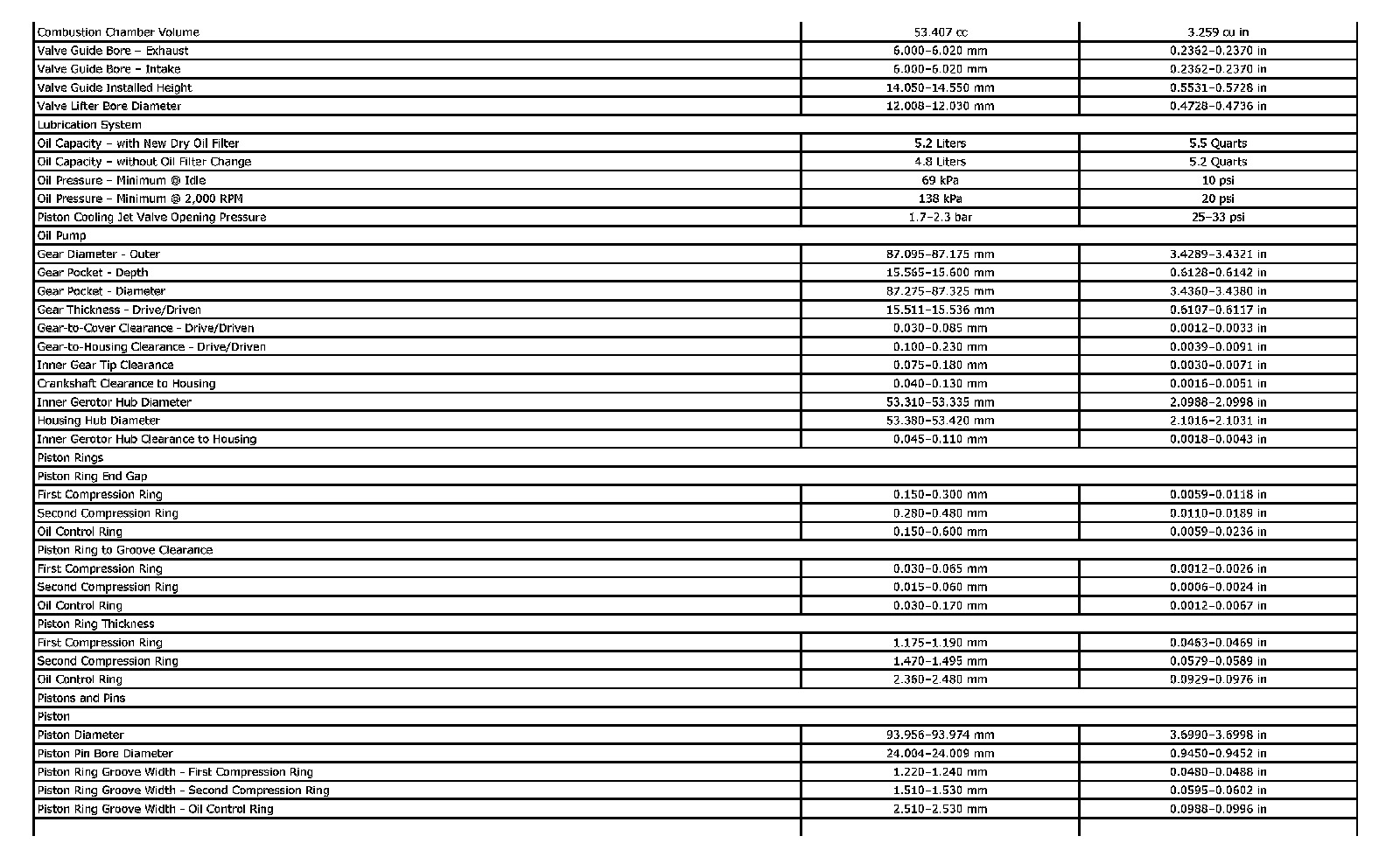 Engine Mechanical Specifications