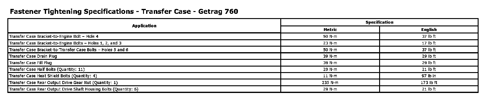 Fastener Tightening Specifications - Transfer Case - Getrag 760: