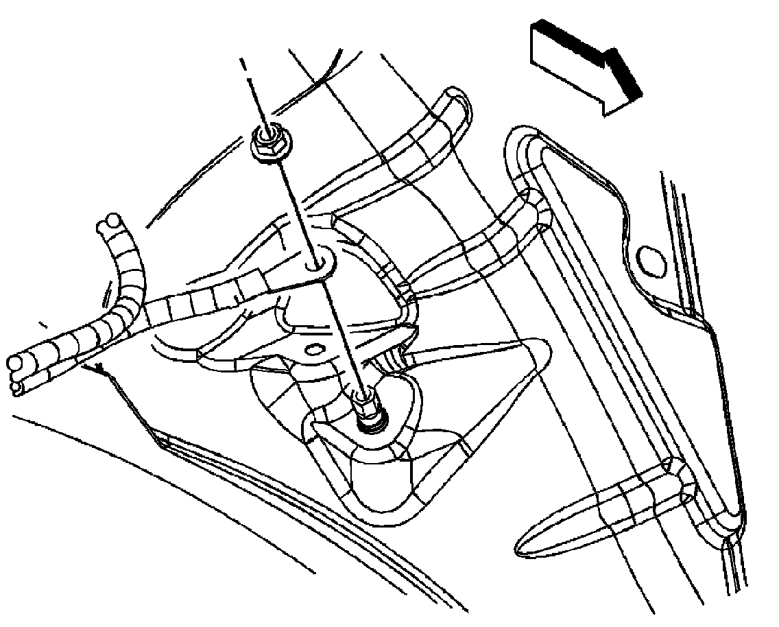 5. Install the negative battery cable ground terminal nut to the wheelhouse stud.