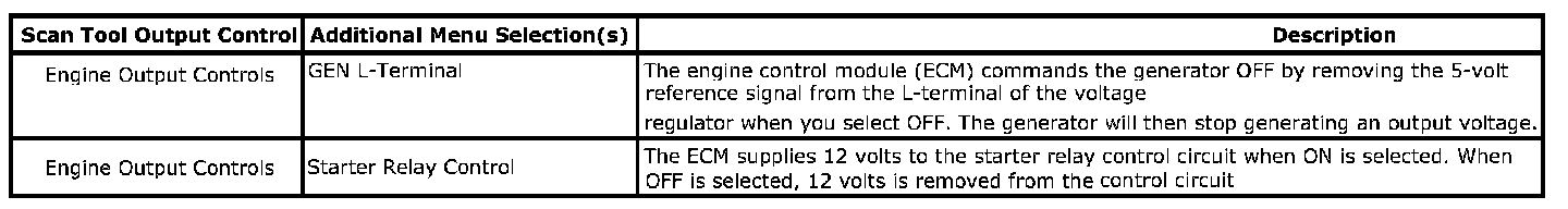 Scan Tool Output Controls - Engine Electrical: