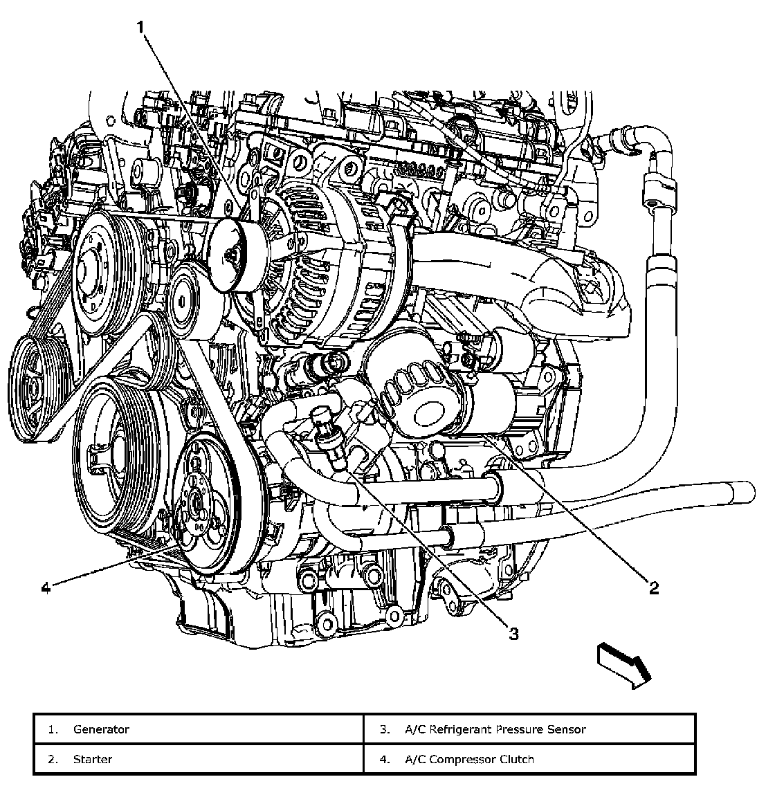 Engine Electrical Component Views - Bottom Front of the Engine:
