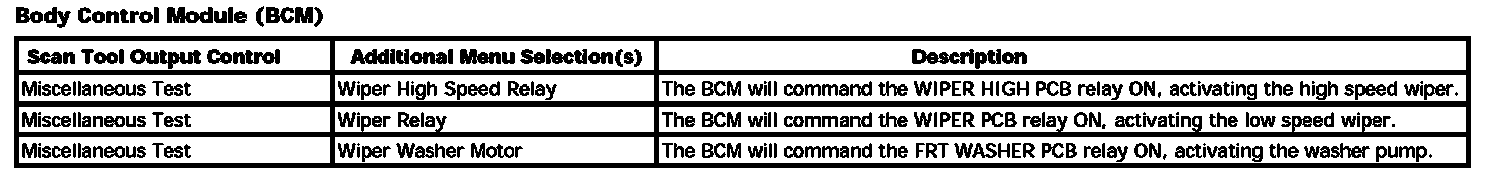 Scan Tool Output Controls - Wipers/Washer Systems: